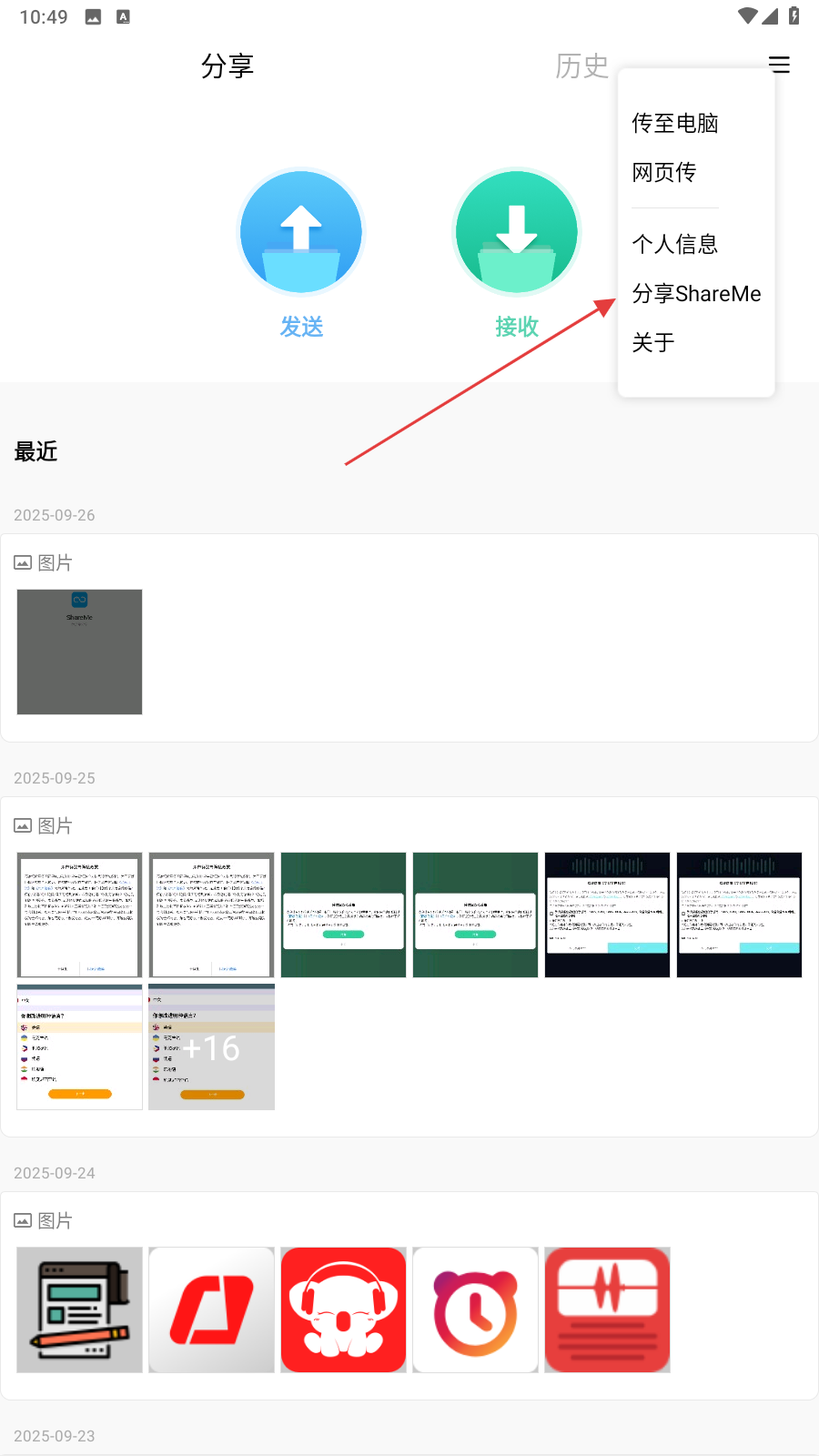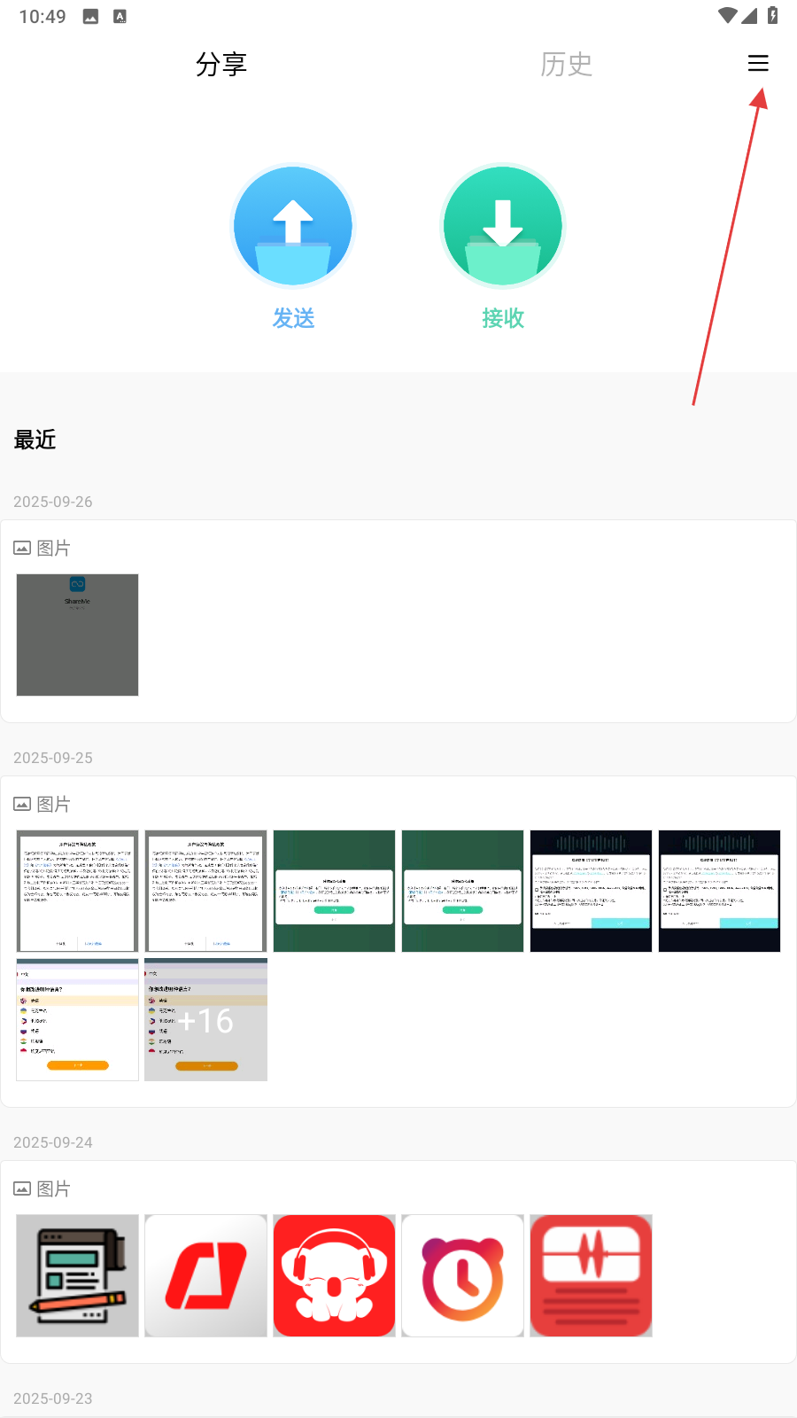 1、啟動(dòng)小米快傳APP,在首頁(yè)內(nèi)點(diǎn)擊右上角三個(gè)橫線的圖標(biāo)。