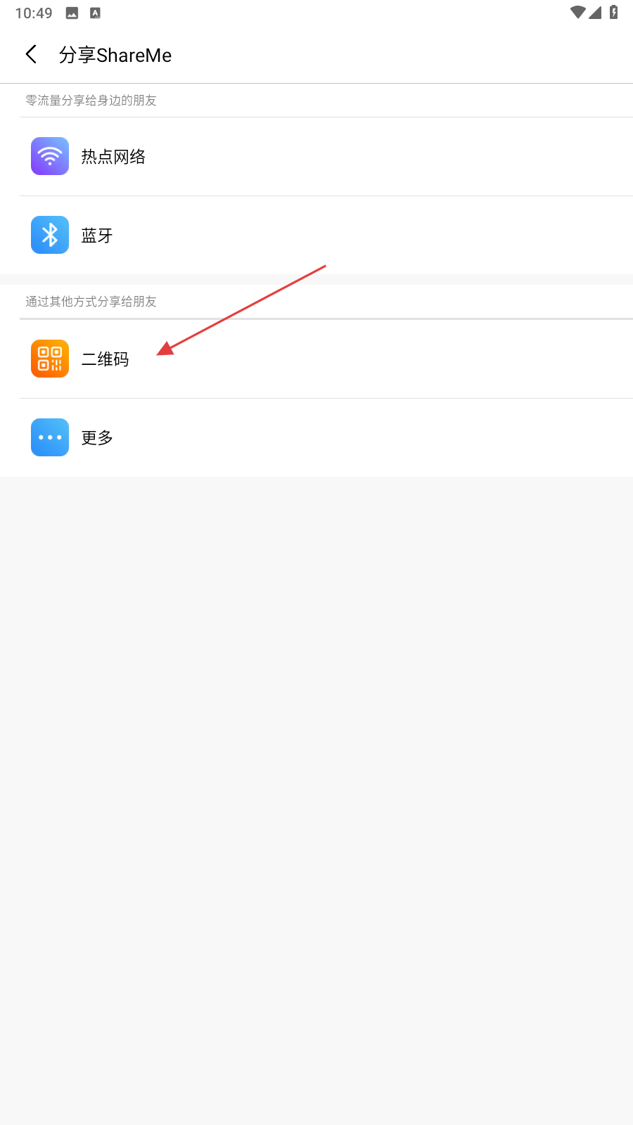 3、進(jìn)入到分享的頁(yè)面內(nèi),選擇并點(diǎn)擊二維碼進(jìn)行分享。