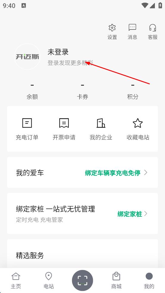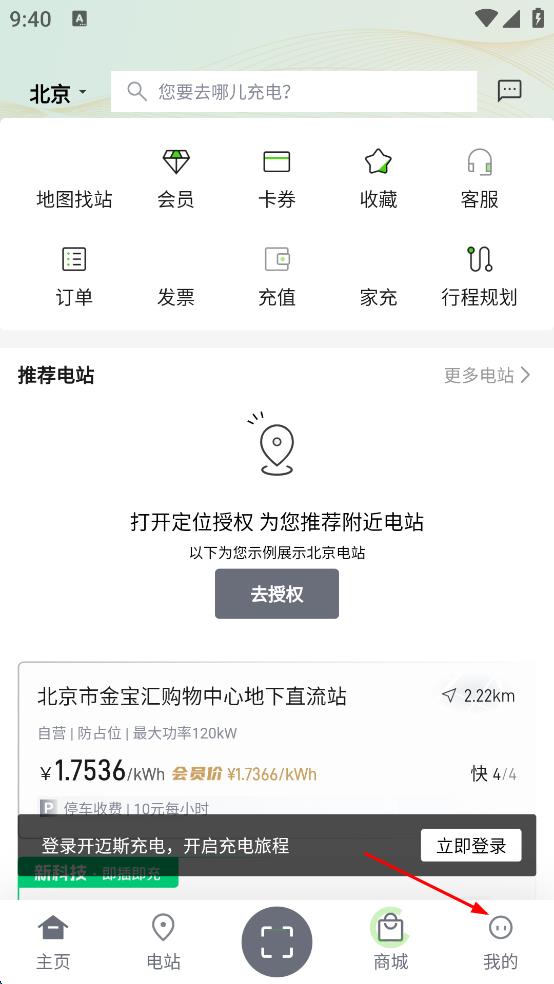 1、打開開邁斯充電軟件,進(jìn)入主頁后,點(diǎn)擊頁面右下角的“我的”選項(xiàng)。