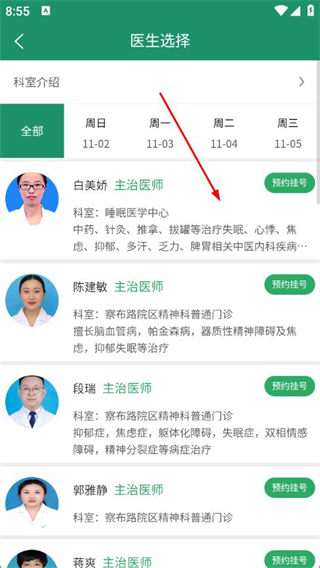 3、在醫(yī)生選擇頁(yè)面,選擇具體的醫(yī)生。