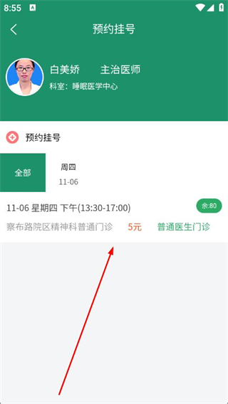 4、在預(yù)約掛號(hào)頁(yè)面選擇就診日期和時(shí)段。