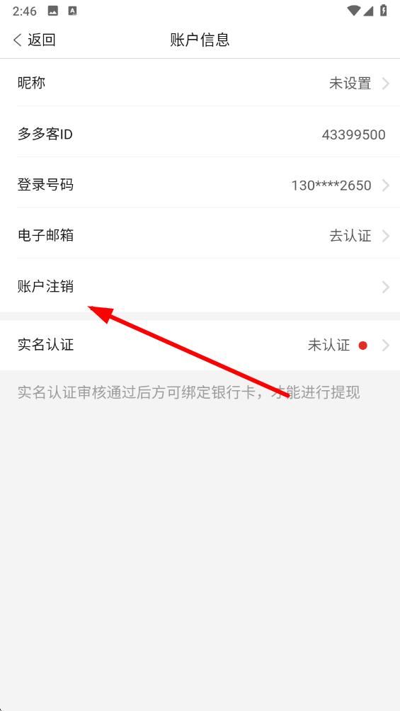 3、在賬戶信息頁面中,找到賬戶注銷選項,點擊進(jìn)入注銷流程,按照頁面提示完成身份驗證等相關(guān)操作后,確認(rèn)注銷即可。
