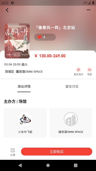 2、演唱會詳情可以直接查看,在線可以立即購買演出門票