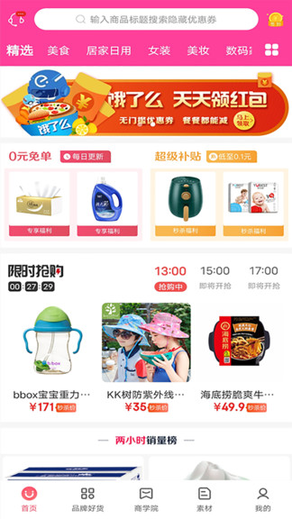 5、可以查看精選單品、好貨專(zhuān)場(chǎng)和每日線(xiàn)報(bào)專(zhuān)區(qū)中的優(yōu)惠素材信息,清楚了解素材內(nèi)容。