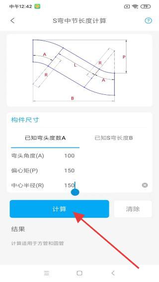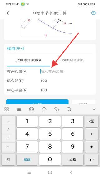 3、進入該頁面內(nèi),輸入彎頭角度、偏心距、中心半徑。