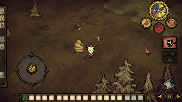 開(kāi)局收集資源(草,樹(shù)枝,燧石,巖石),砍樹(shù),敲礦石,收集吃的蘿卜、漿果,誘捕鼴鼠?;ò甏禾焓占龌▊悖渌麜r(shí)候可以不收集。天黑前生火,烤東西吃。第二天收集生火熄滅后的灰燼。