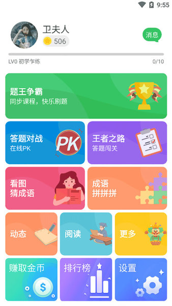 題王爭(zhēng)霸答題王者app通過(guò)各種各樣的趣味小游戲來(lái)考驗(yàn)玩家對(duì)于各種知識(shí)的掌握,看圖猜成語(yǔ)、競(jìng)技pk、成語(yǔ)拼拼拼等多種模式任你挑選,加深大家對(duì)于各種成語(yǔ)知識(shí)的理解性記憶,沒(méi)有任何限制讓你隨時(shí)都能開(kāi)啟體驗(yàn)!