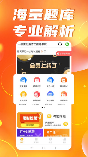 注冊(cè)消防工程師億題庫(kù)是一款幫助想要報(bào)考一級(jí)消防工程師二級(jí)消防工程師的人群的app,軟件上有大量的注冊(cè)消防師考試題庫(kù),讓用戶可以隨意挑選刷題,幫助提升通過(guò)路,每年的考試題目都有詳細(xì)的解析,讓用戶能夠理解,考前押題更是讓用戶們更加的有信心。