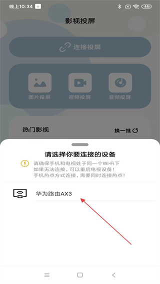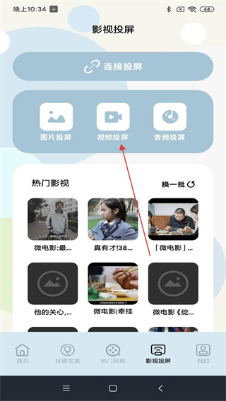 2、進入影視投屏的頁面內(nèi),點擊視頻投屏的功能按鈕。