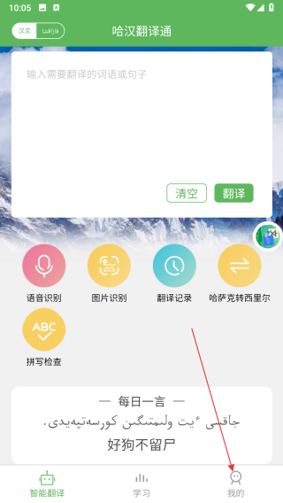 1、打開哈漢翻譯通應用,點擊界面右下角的我的選項,進入個人中心頁面。
