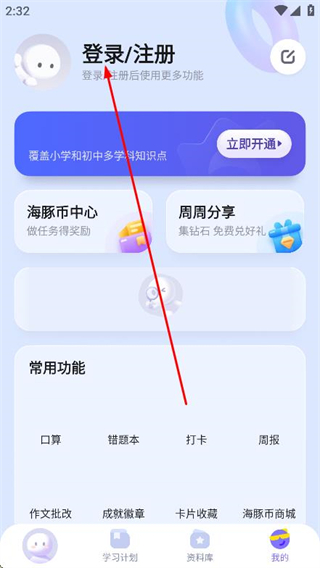 1、打開海豚AI學(xué),點(diǎn)擊底部導(dǎo)航欄我的選項(xiàng)。