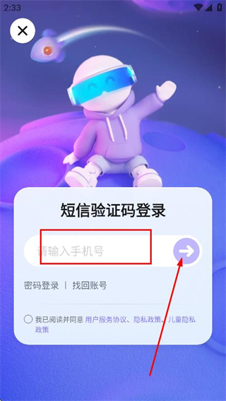 3、輸入需要注冊(cè)的手機(jī)號(hào)碼,點(diǎn)擊箭頭按鈕。