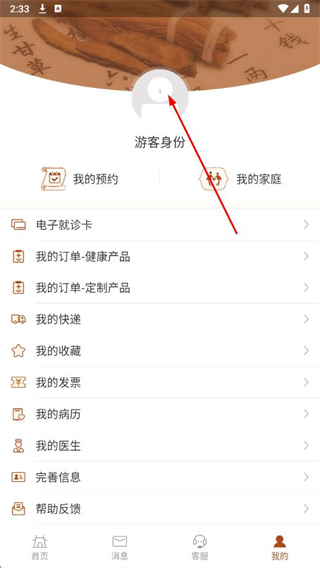 2、在我的頁(yè)面中,點(diǎn)擊上方的游客身份區(qū)域,進(jìn)入登錄頁(yè)面。