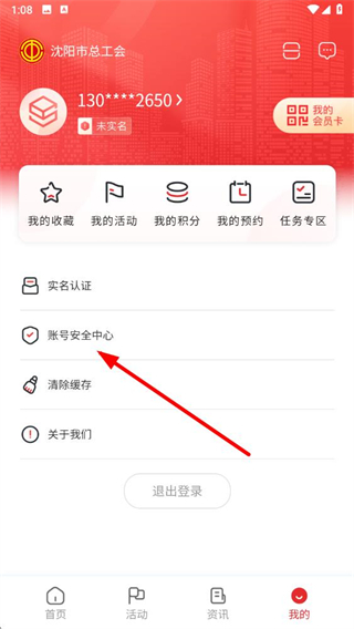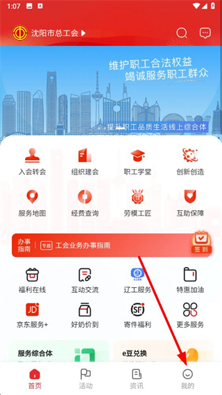 1、打開沈陽e工會app,點擊底部導航欄的我的選項進入個人頁面。