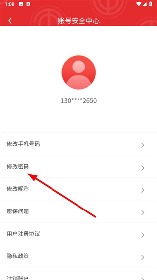 3、在賬號安全中心界面中,點擊修改密碼選項。