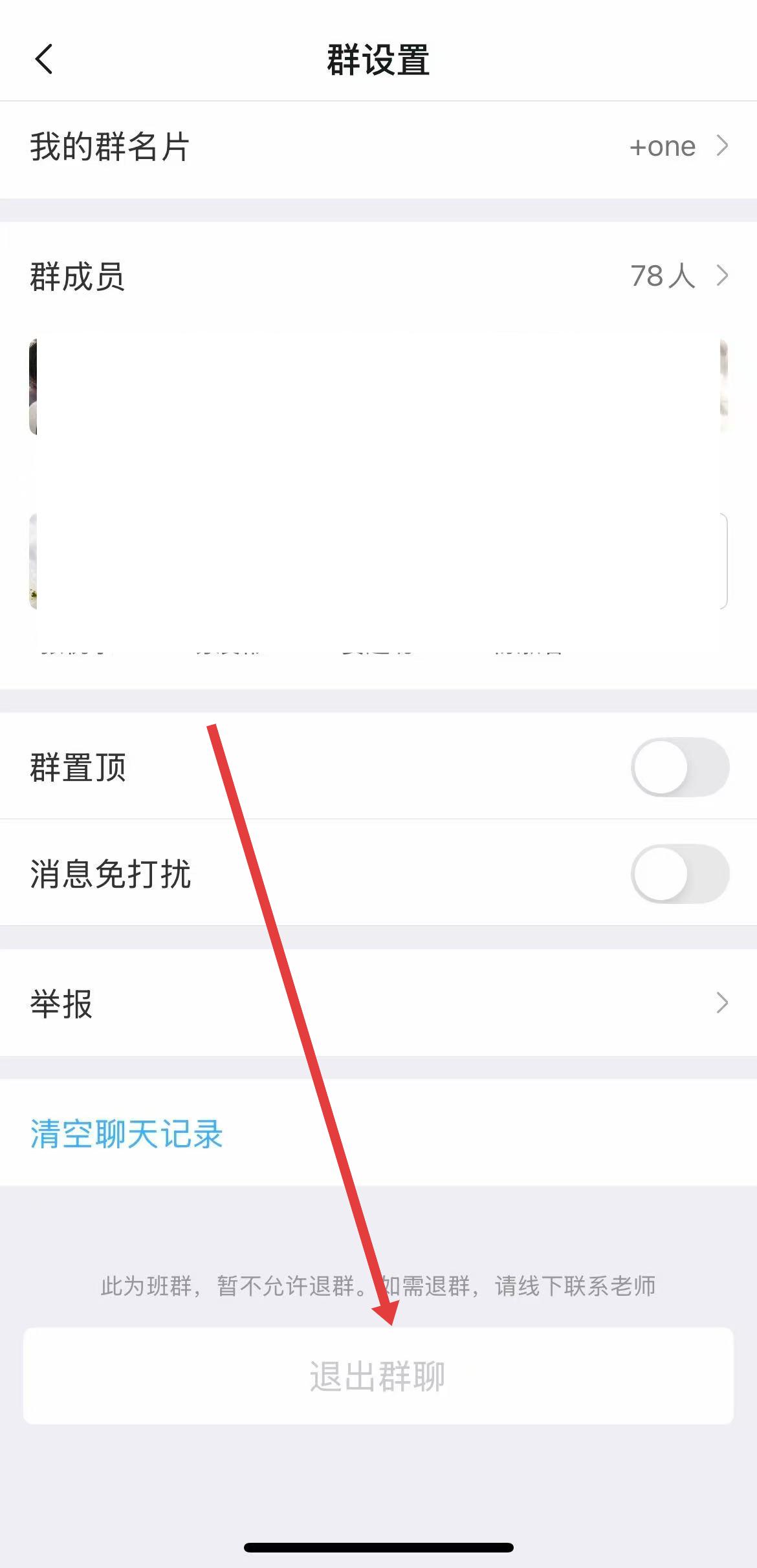 3、在群設(shè)置頁(yè)面,下滑找到退出群聊選項(xiàng),點(diǎn)擊它按提示操作即可退出。