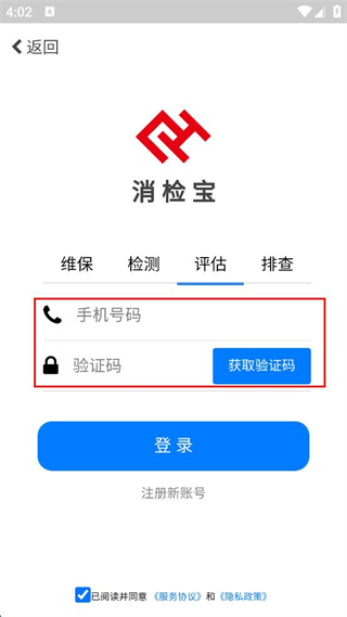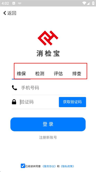 2、進入手機號碼登錄頁面,選擇維保、檢測、評估、排查其中一個分類。