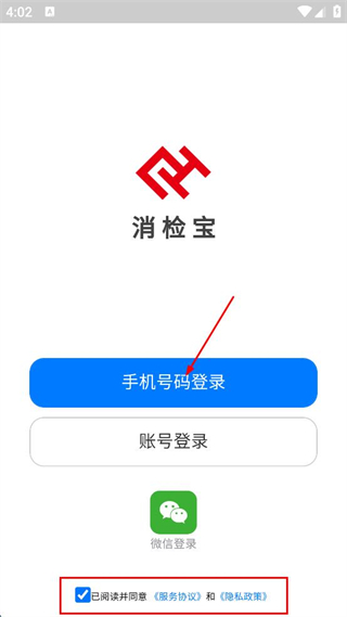 1、勾選已閱讀并同意服務協(xié)議和隱私政策,點擊手機號碼登錄。