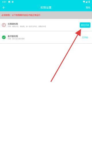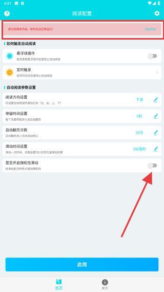 1、進(jìn)入app內(nèi),目前處于未能啟用的狀態(tài),頁面會(huì)出功能性的按鈕,需將右側(cè)按鈕開啟。