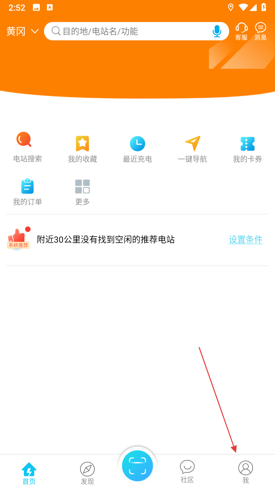 1、打開黃岡充電APP,點擊底部導(dǎo)航欄我,進(jìn)入個人中心頁面。