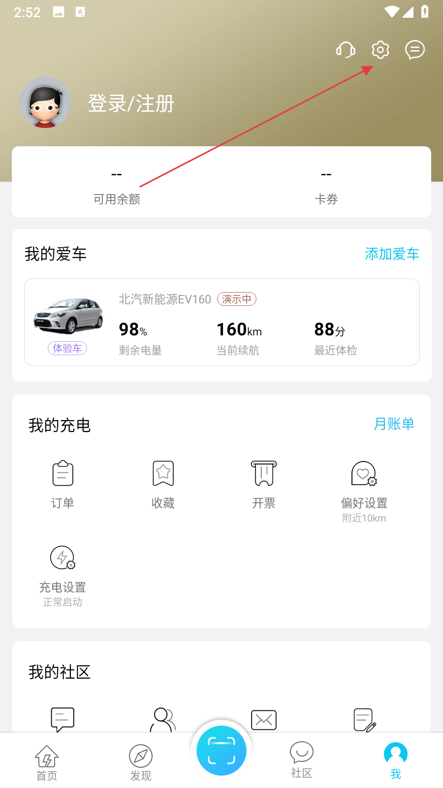 2、在個人中心頁面,點擊右上角的設(shè)置圖標(biāo),進(jìn)入設(shè)置界面。