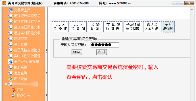 6、校驗交易系統(tǒng)資金密碼,輸入資金密碼,點擊確認。