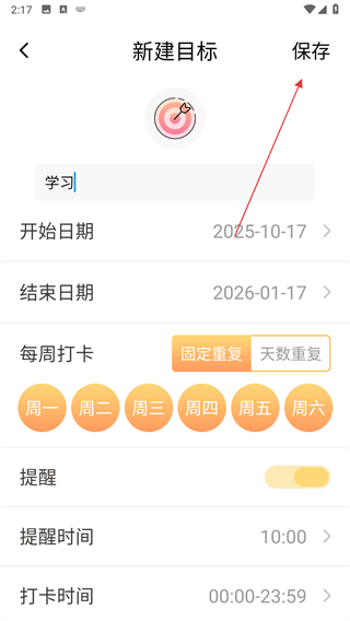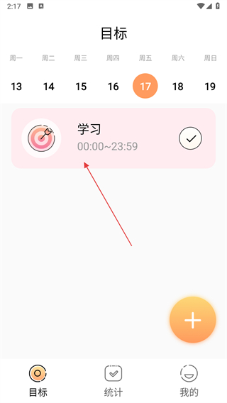 4、保存后返回目標(biāo)頁(yè)面,即可看到創(chuàng)建好的目標(biāo)卡片,后續(xù)可在對(duì)應(yīng)時(shí)間進(jìn)行打卡。