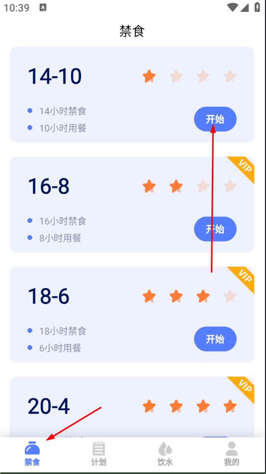 1、打開斷食應(yīng)用,進入禁食模式選擇頁面,選擇合適的禁食計劃,點擊開始按鈕。
