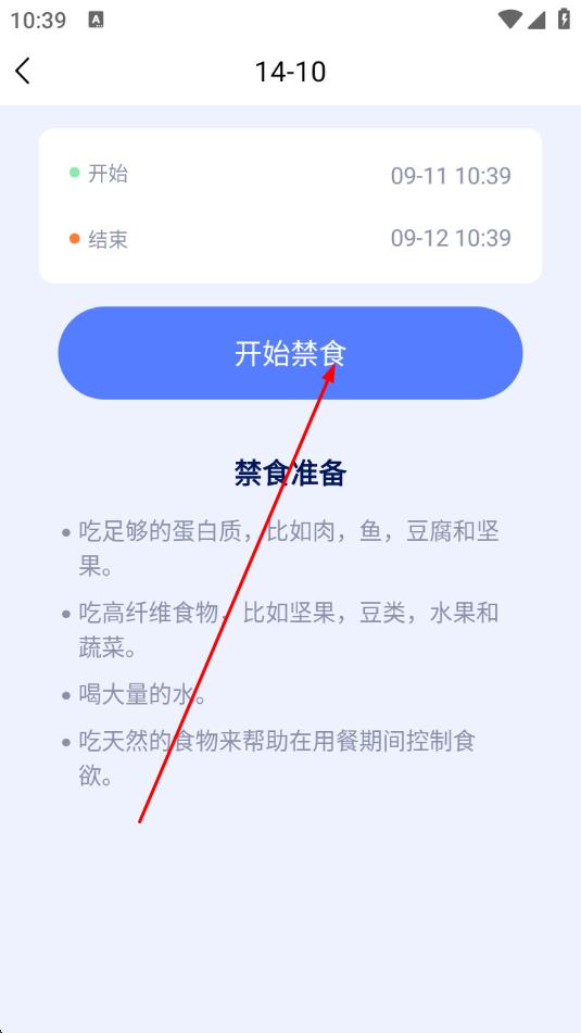 2、進入所選禁食計劃詳情頁面,查看禁食準(zhǔn)備相關(guān)提示后,點擊開始禁食按鈕。