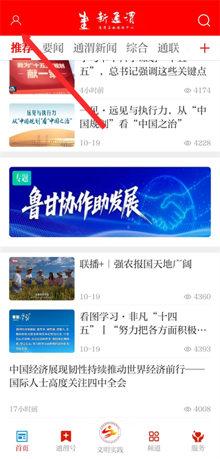 1、打開新通渭app,點擊首頁左上角個人的圖標,進入個人頁面。