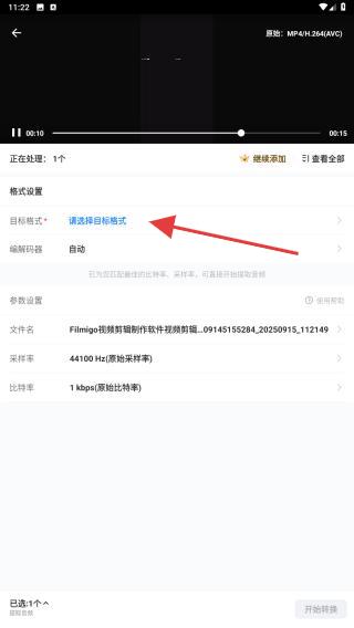 3、進(jìn)入到提取界面內(nèi),點(diǎn)擊目標(biāo)格式進(jìn)行選擇。