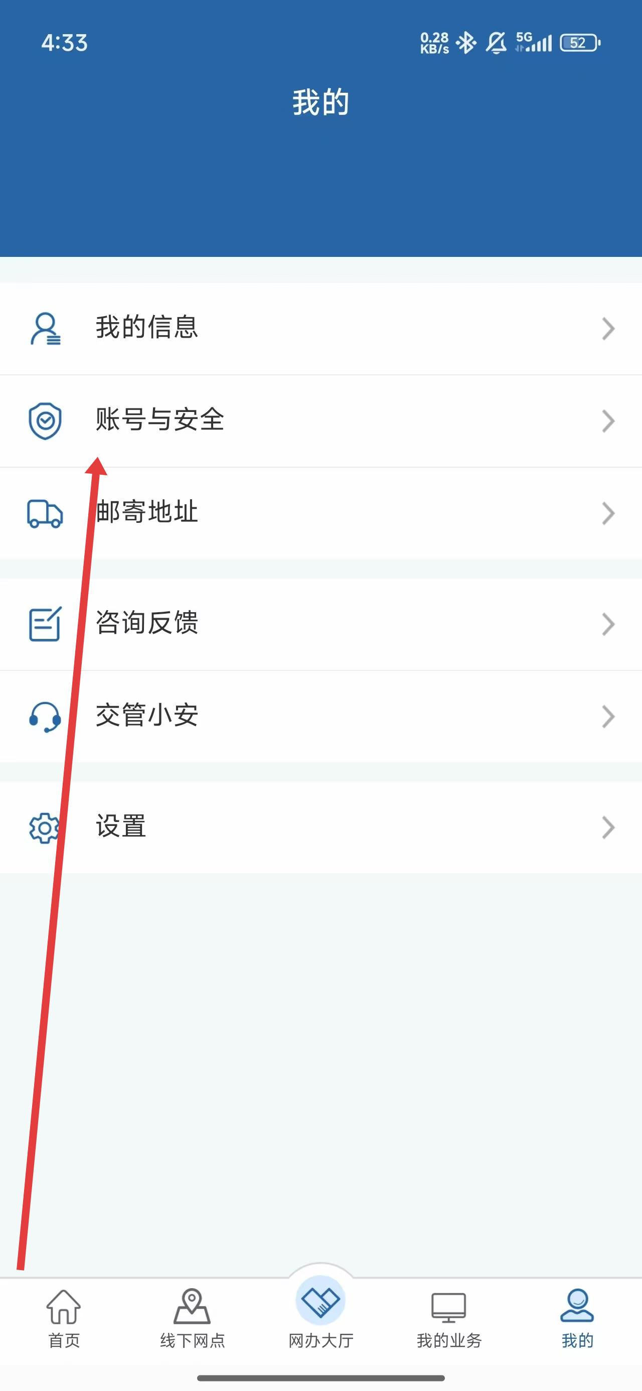2、在我的頁(yè)面中,點(diǎn)擊賬號(hào)與安全進(jìn)入查看更多功能。