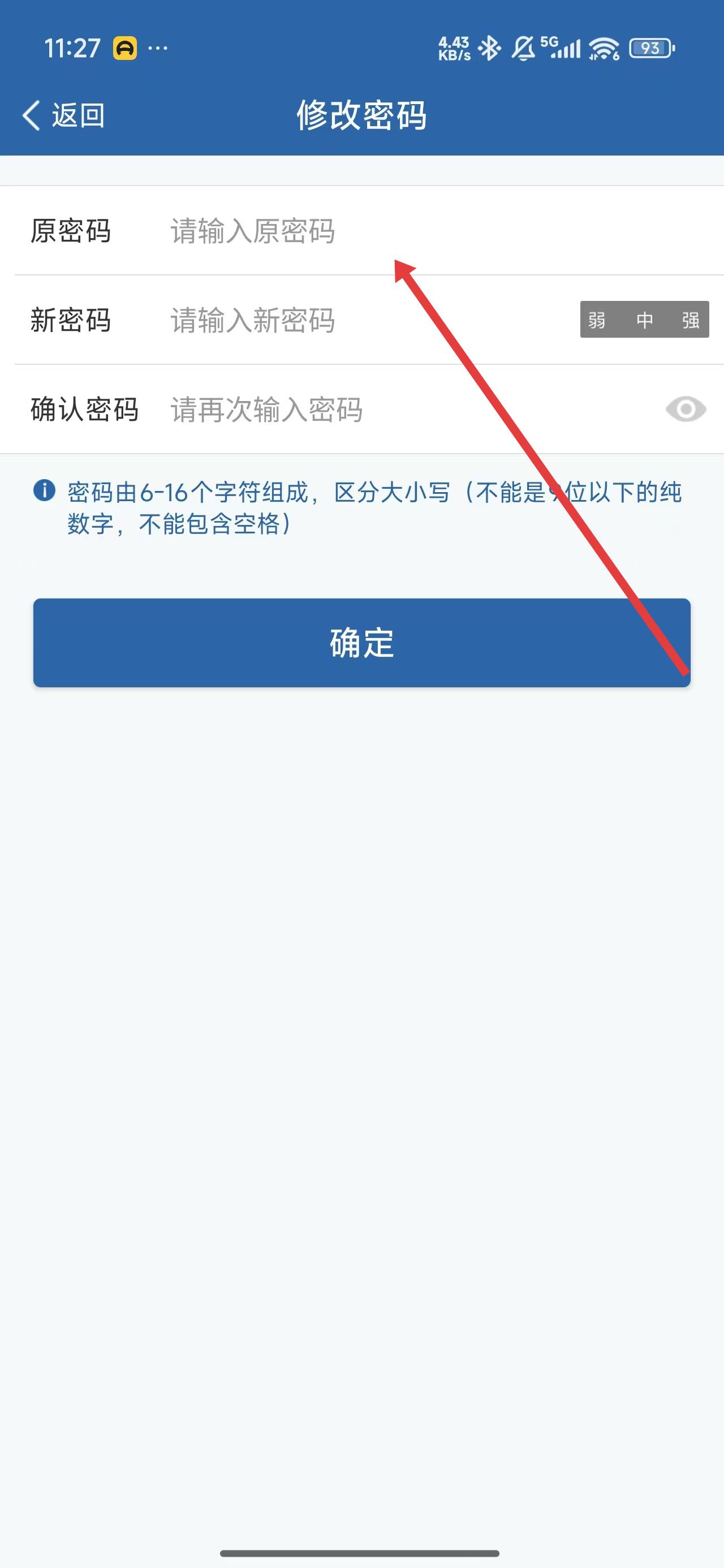 4、在進(jìn)入到修改密碼頁(yè)面后,依次輸入原密碼新密碼,完成修改操作。