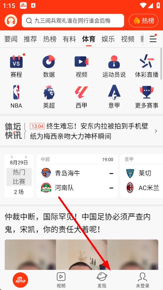1、打開新浪新聞APP,點擊底部導(dǎo)航欄發(fā)現(xiàn)。