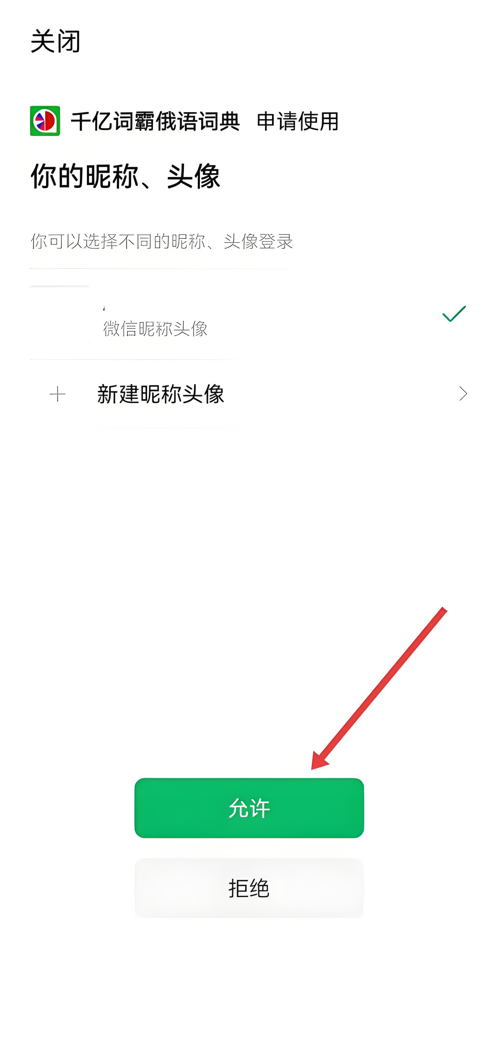 4、在微信授權(quán)頁面,確認(rèn)要使用的微信昵稱和頭像后,點擊底部允許按鈕,完成微信登錄操作。