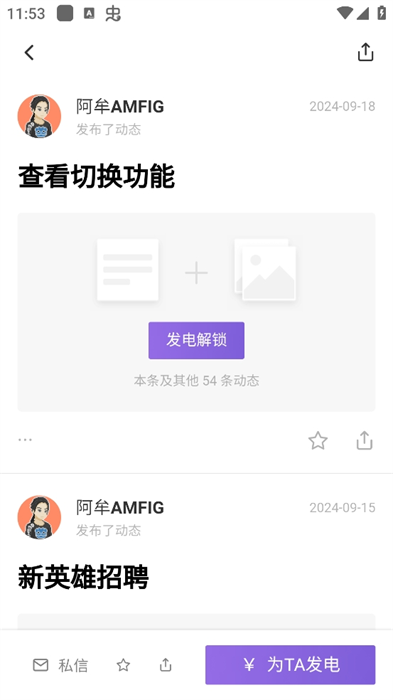 3、基本上是按照會(huì)員制月度付費(fèi),也不是很多,開啟為愛發(fā)電之后就可以看到作者專屬的內(nèi)容,也是創(chuàng)作者回饋給粉絲的;