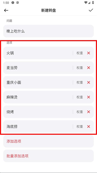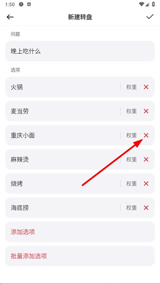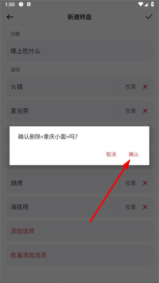 2、在新建轉(zhuǎn)盤頁面,找到需要刪除的轉(zhuǎn)盤信息選項,比如重慶小面。