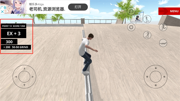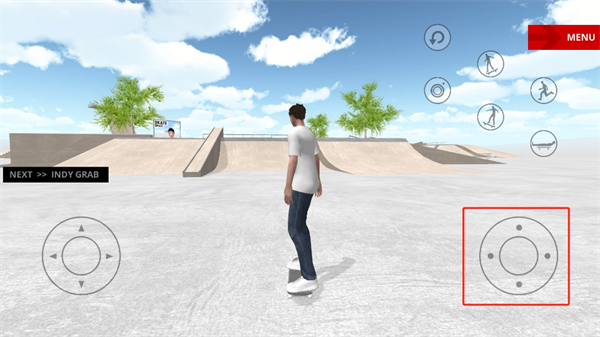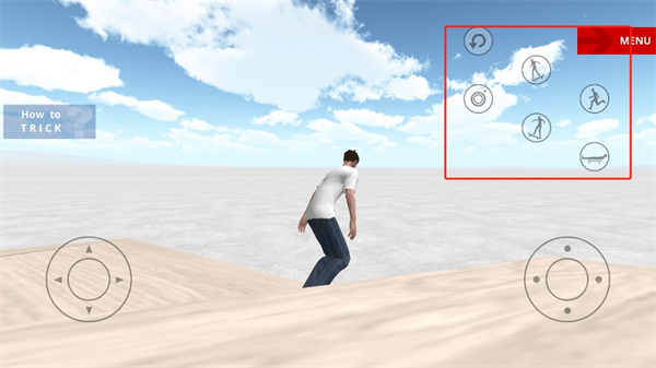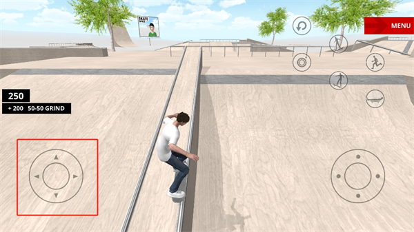 1、通過右邊的搖動(dòng)滑桿控制角色移動(dòng),在滑板區(qū)域進(jìn)行移動(dòng)做出高難度的滑板動(dòng)作;