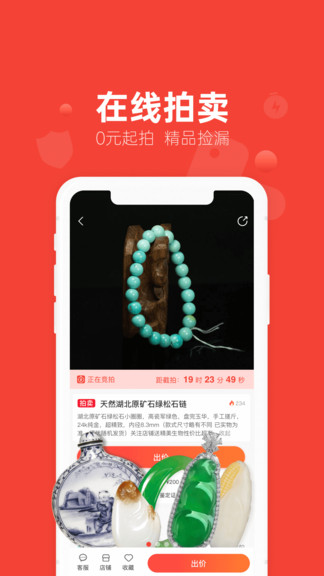 平臺商品覆蓋玉翠珠寶、木質(zhì)文玩、紫砂茶藝、歷代藏品、海外藝術(shù)品等類目。以“ 直播+商城+競拍+鑒定+社區(qū)”開辟了移動電商的全新運營模式,從而解決了文玩藝術(shù)品行業(yè)交易難,定價難,鑒定難,入門難這4大門檻問題,為用戶打造了透明、健康、安全的文玩消費環(huán)境,有效助推行業(yè)的發(fā)展升級。