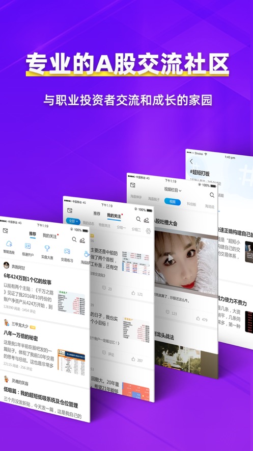 淘股吧中國(guó)大陸知名的移動(dòng)互聯(lián)投資社交化平臺(tái),服務(wù)于證券市場(chǎng)上億的證券 投資者,在淘股吧上活躍著上百萬的職業(yè)投資者,每天分享豐富證券交易、投 資心得。投資者可在淘股吧上認(rèn)識(shí)投資高手,訂閱自選股信息,包括公告、新聞、研報(bào)、討論、股吧、高手操盤、熱點(diǎn)主題等動(dòng)態(tài)信息,以加強(qiáng)股票跟蹤, 獲得超額收益,促進(jìn)好友溝通。