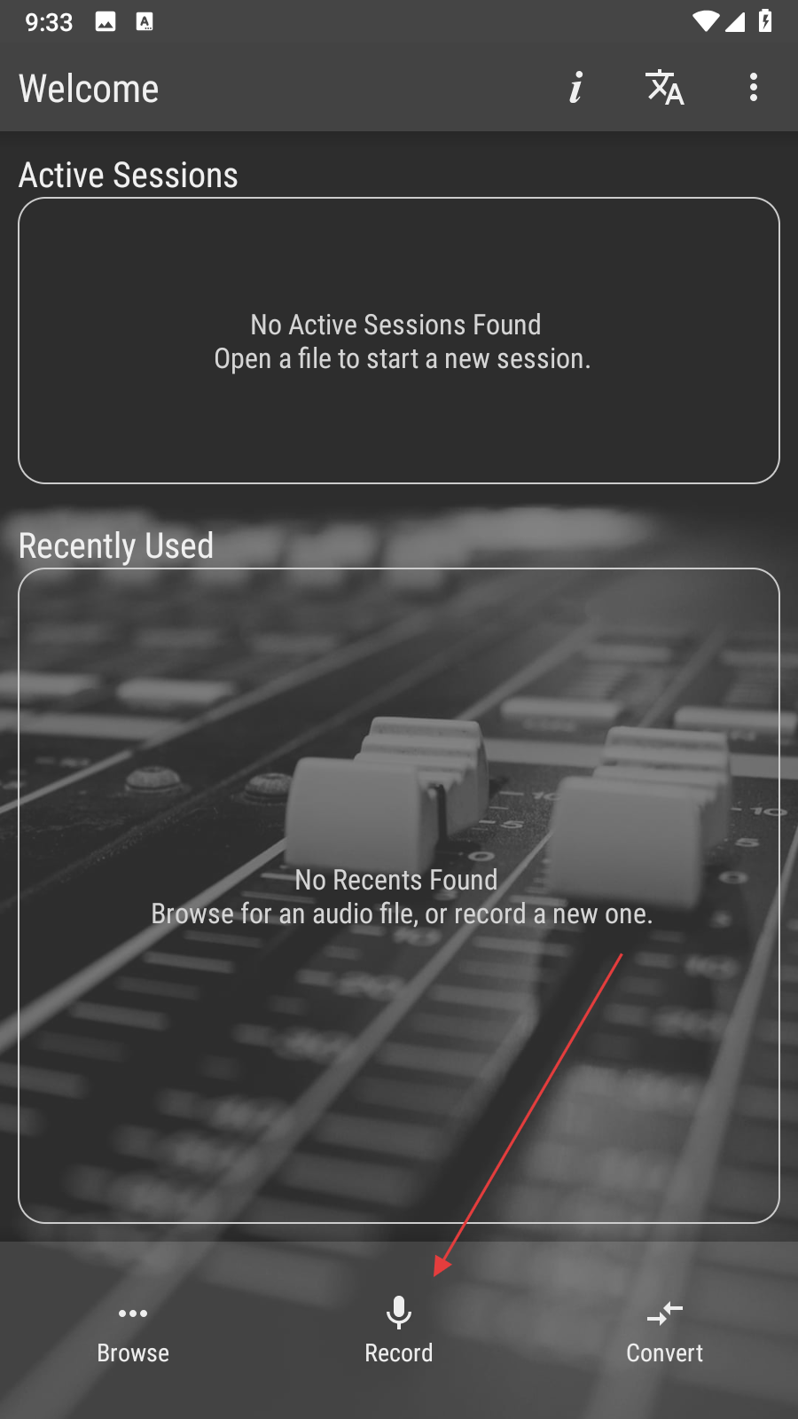 1、打開WaveEditor應(yīng)用,點(diǎn)擊Record進(jìn)入錄制界面。