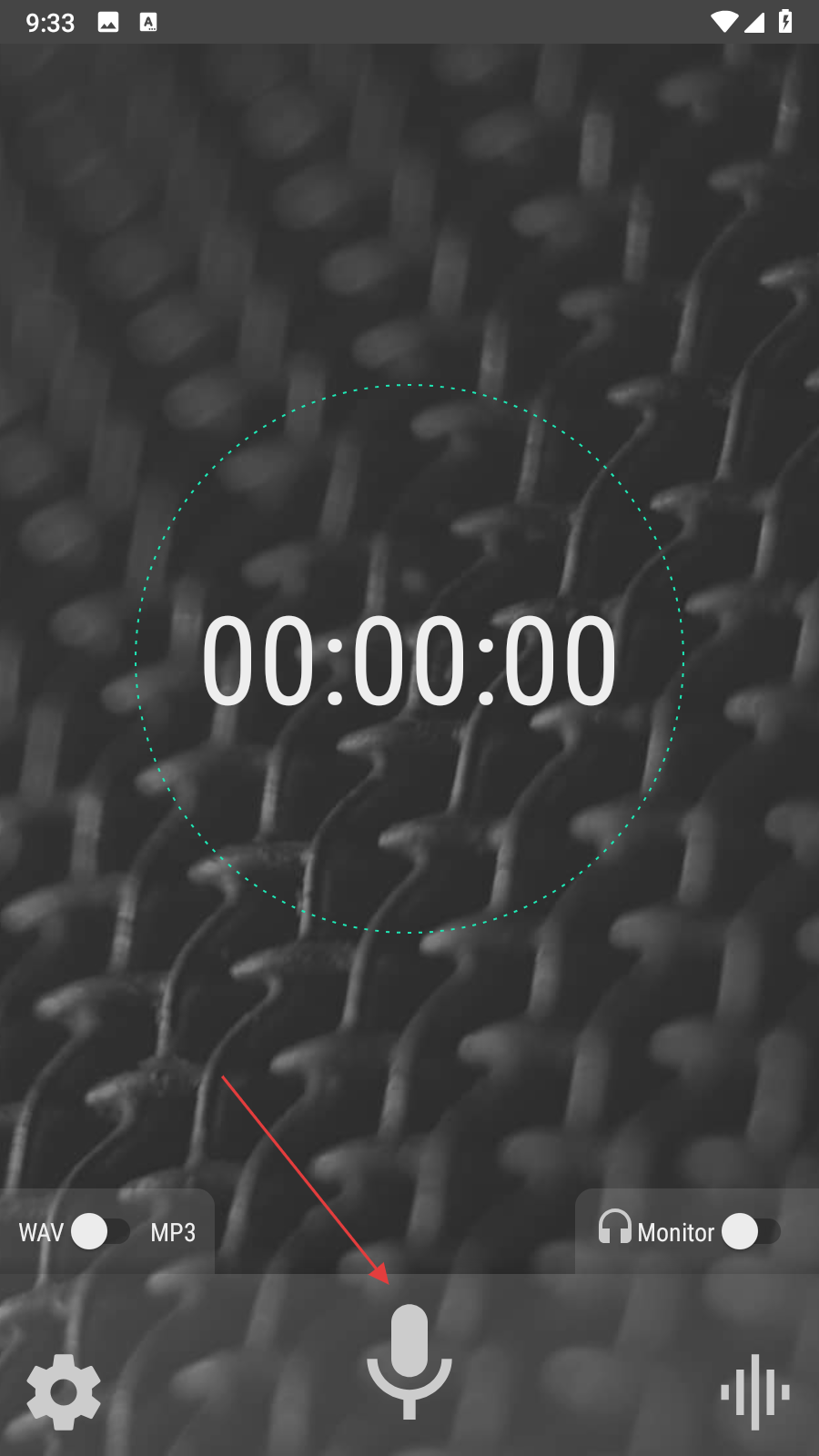 2、在錄制頁面,點(diǎn)擊中間的麥克風(fēng)圖標(biāo),開始進(jìn)行音頻錄制。
