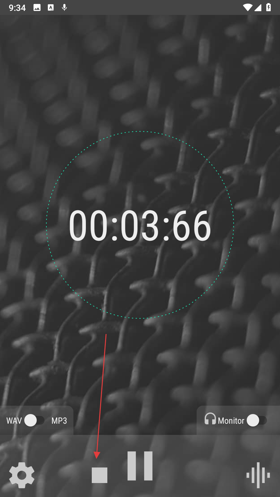 3、錄制完成后,點(diǎn)擊底部的停止按鈕,停止音頻錄制。