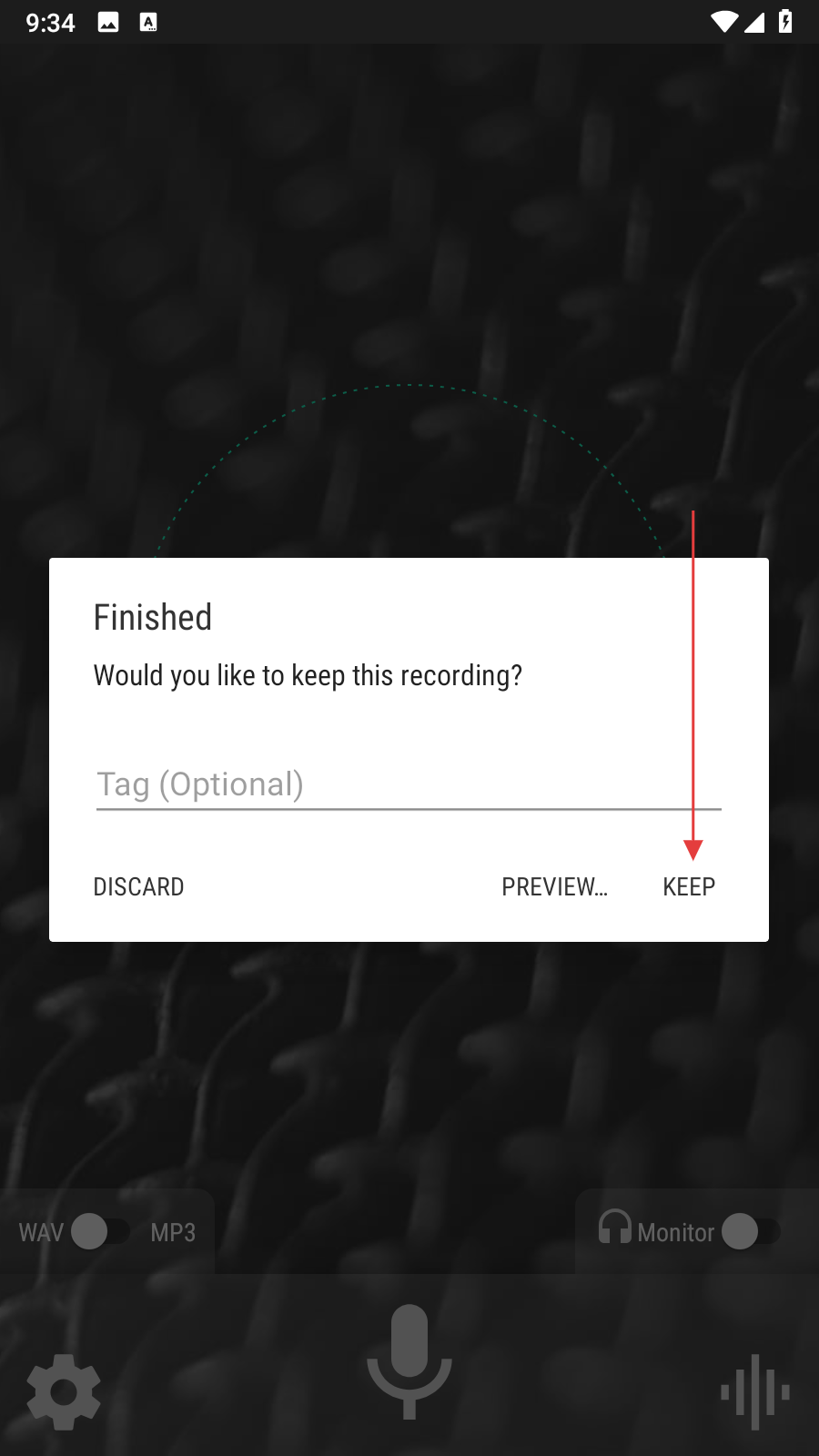 4、在彈出的保留錄音窗口中,點(diǎn)擊KEEP按鈕,即可完成錄音的保存。