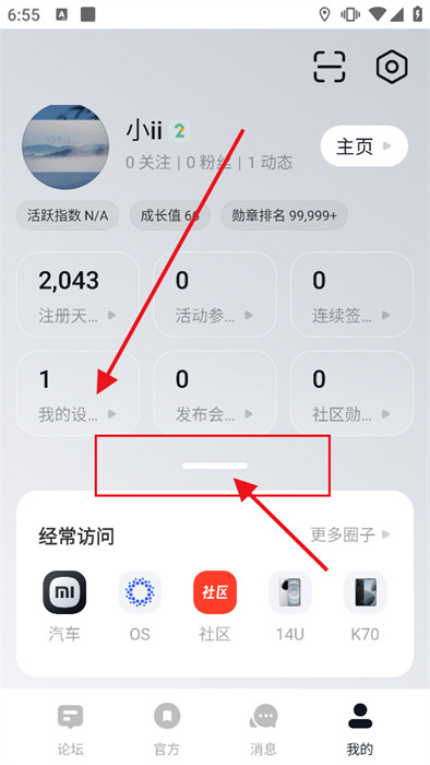 該部分為用戶設(shè)置的詳細(xì)列表部分。在該列表中可以清楚的查到當(dāng)前登錄用戶的相關(guān)信息,如:賬號(hào)等。還可在此檢測(cè)【小米社區(qū)APP】的相關(guān)最新版本動(dòng)態(tài)及當(dāng)前版本的相關(guān)信息列表。