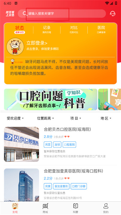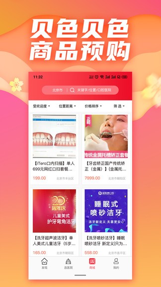 根據(jù)距離展示出同城附近所有醫(yī)院信息,您可以根據(jù)診所、門診、醫(yī)院等屬性分類找到適合您的口腔醫(yī)院,同時(shí)也可以在這里查看牙友討論,與同種情況的牙友在線交流發(fā)帖互動。