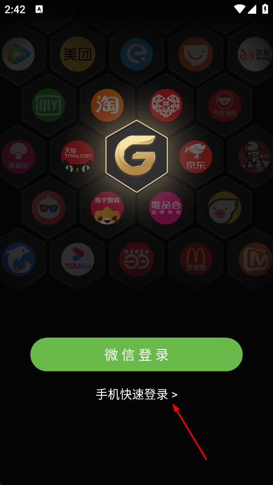 2、在登錄選擇頁(yè)面,點(diǎn)擊手機(jī)快速登錄選項(xiàng),進(jìn)入到手機(jī)登錄頁(yè)面。