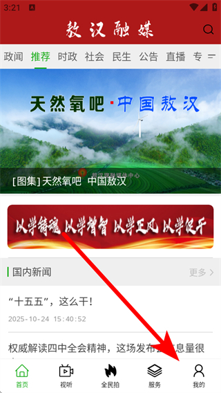 1、打開敖漢融媒APP首頁,點(diǎn)擊底部我的,進(jìn)入個(gè)人的頁面。