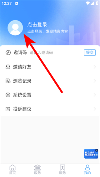 2、在個人的頁面,點擊點擊登錄按鈕,進入登錄注冊界面。