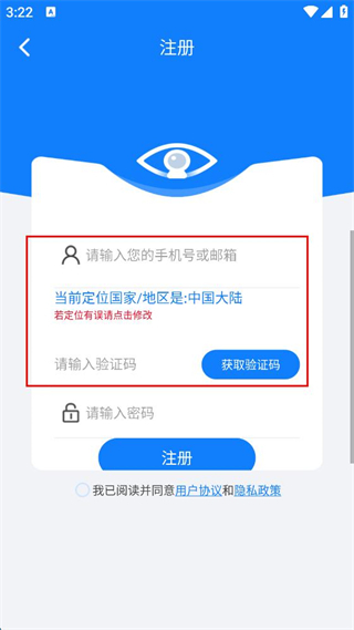 2、在注冊頁面,輸入手機(jī)號或郵箱,獲取并輸入驗(yàn)證碼。